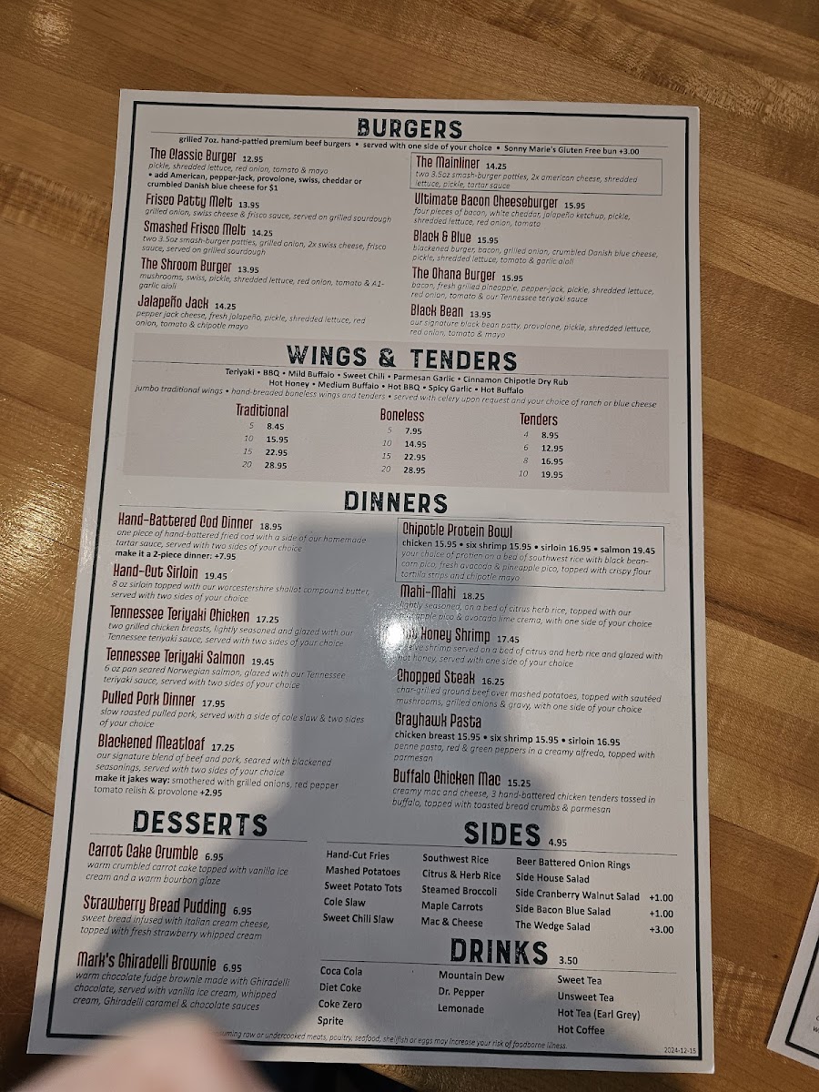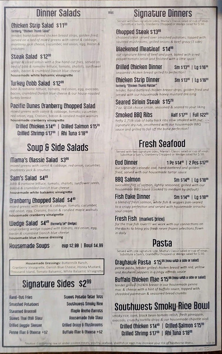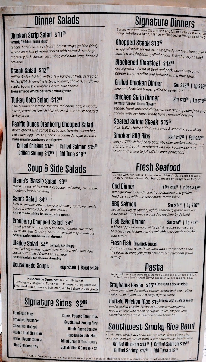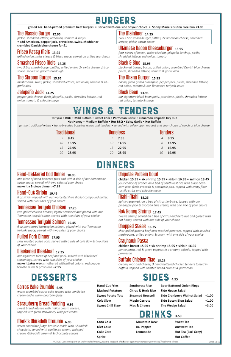 This menu suits casual dining occasions where guests can enjoy a full meal ranging from light starters to hearty main courses. The structure supports ordering sequences from appetizers through entrees and sides, accommodating both individual and group dining preferences.