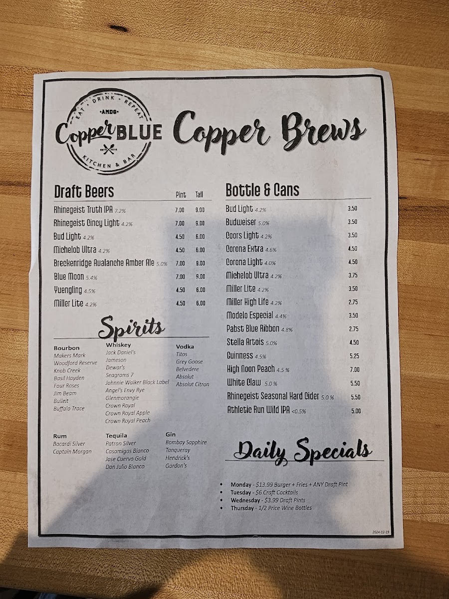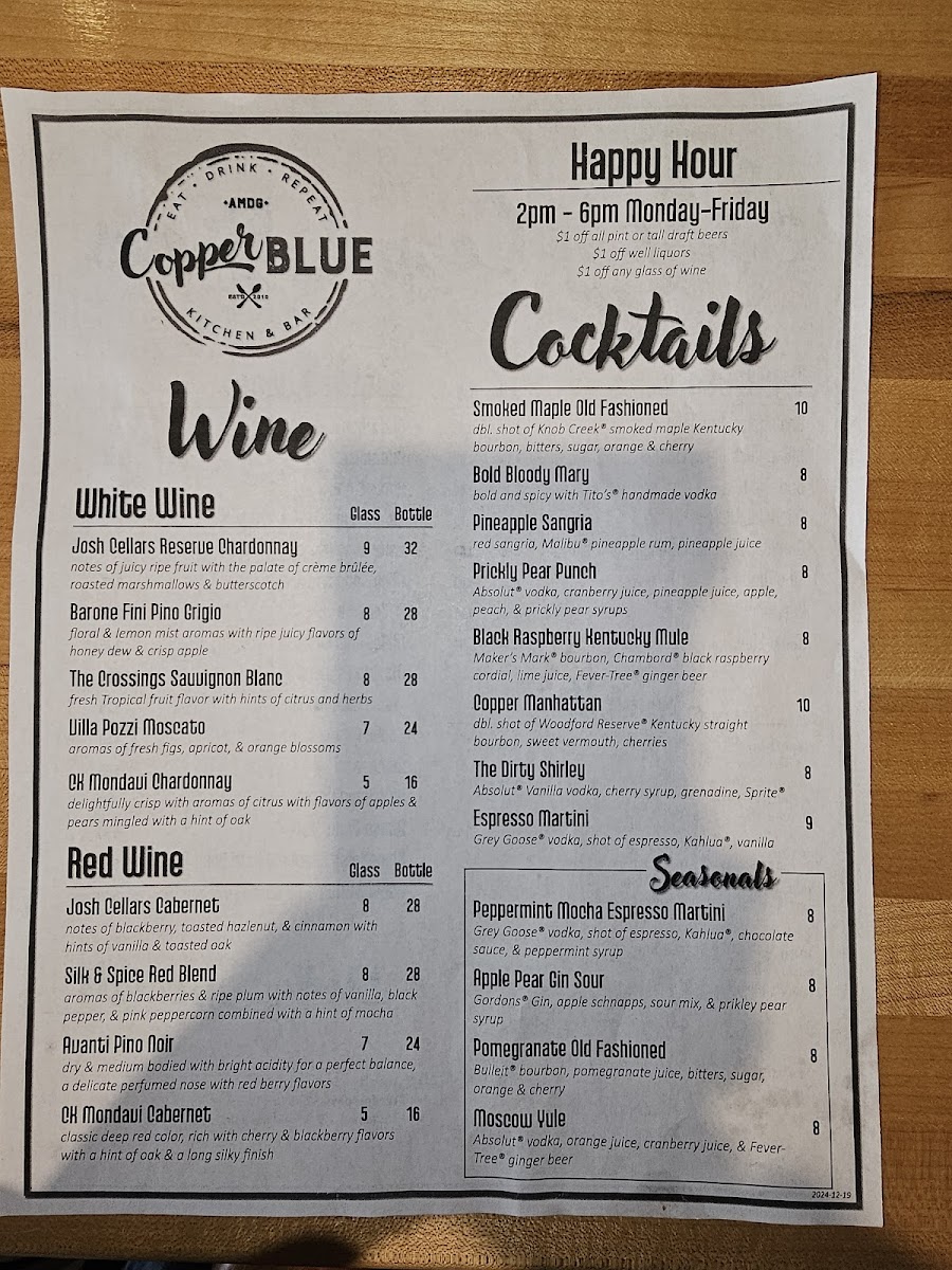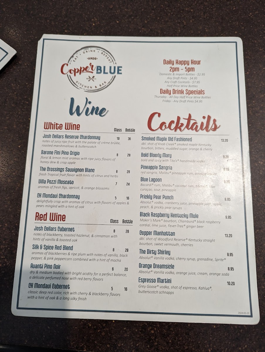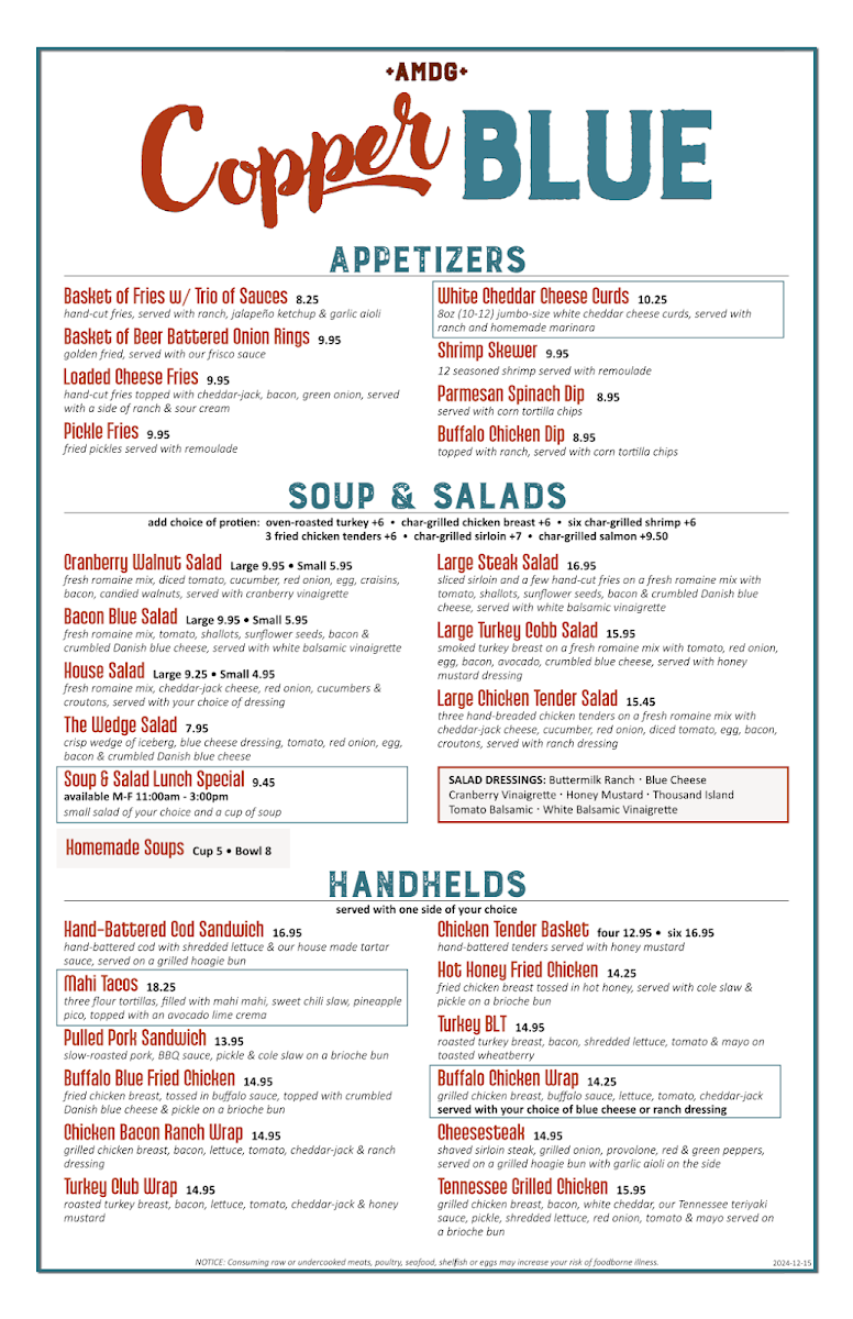 Copper Blue Menu